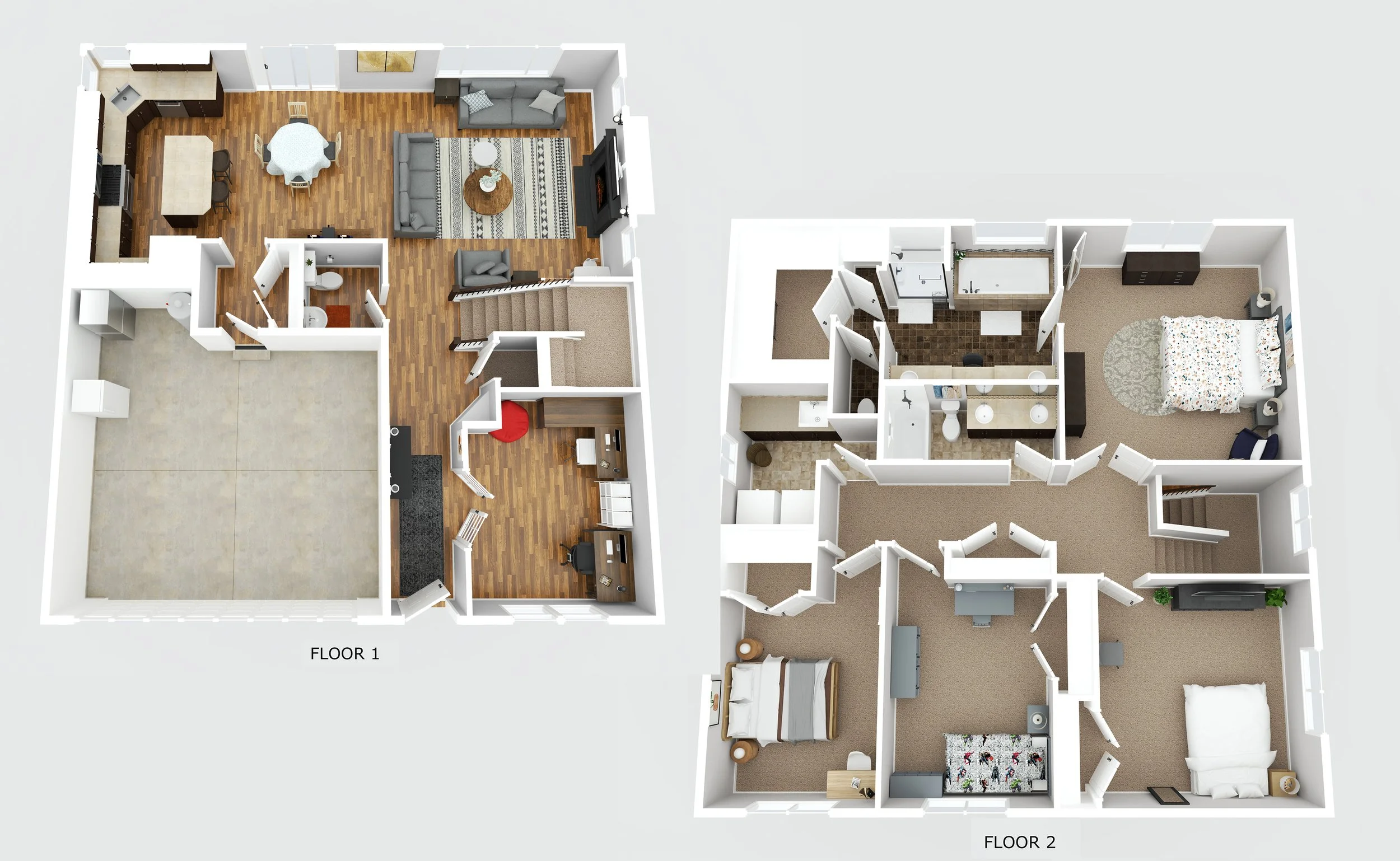 Interior dollhouse 3D render - $125 ($95 when paired with a floor plan)